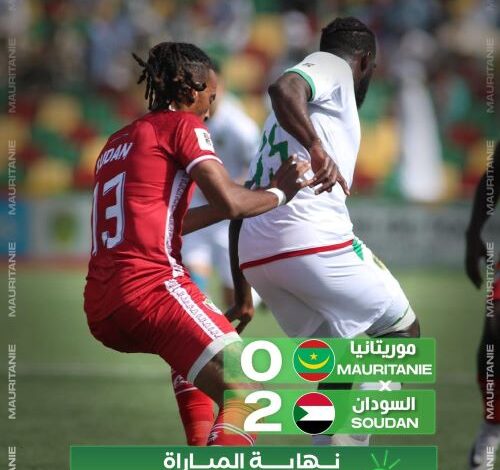 تلقي المنتخب الوطني لكرة القدم المرابطون خسارة غير متوقعة امام السودان بهدفين دون مقابل ضمن تصفيات كاس العالم ظهر واضحا من البداية بان العناصر الوطنية تاثرت بدرجة الحرارة التي تلعب فيها اكثر من لاعبي السودان لكون غالبية عناصرها تلعب في اوربا وفي جو بارد بهذه النتيجة يواصل المرابطون تذيل مجموعتهم بينما يتصدرها السودان في انتظار بقية المباريات نفس الاسبوع الجاري.