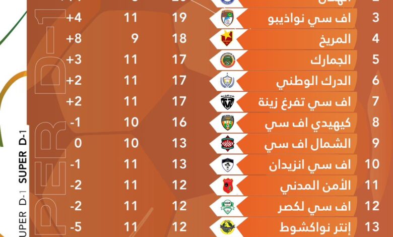 الهلال والمريخ يتراجعان في الجولة 11من الدوري الموريتاني