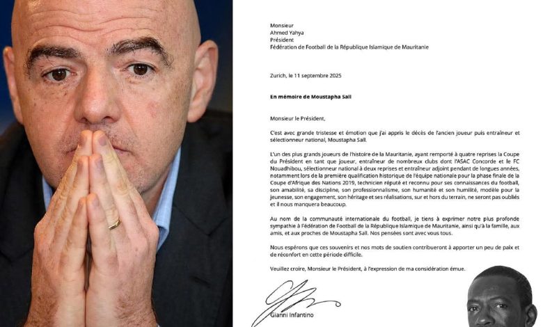 رئيس “فيفا” يتقدم ببرقية عزاء الى أسرة كرة القدم الموريتانية